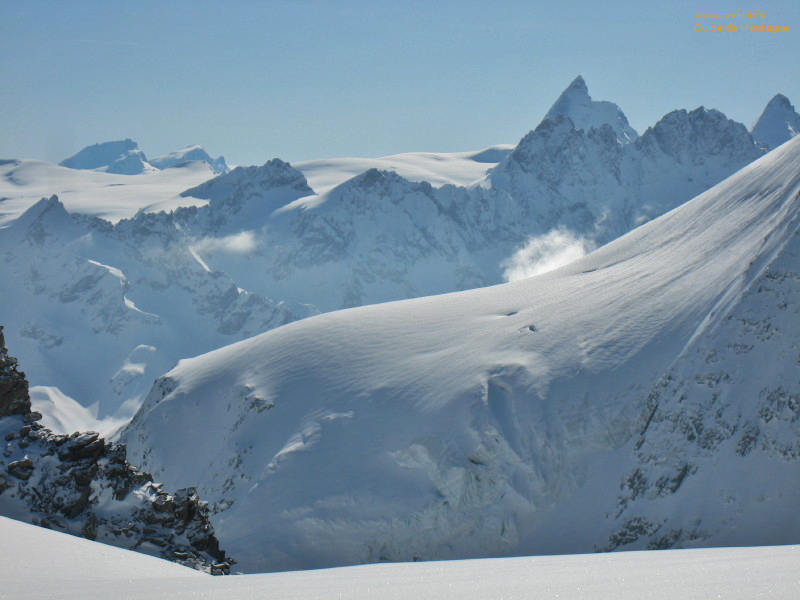 Ce raid à ski de randonnée mythique permet de côtoyer les géants alpins du Mont Blanc au Cervin. Nous gravirons la Pigne d'Arolla à 3796 m.